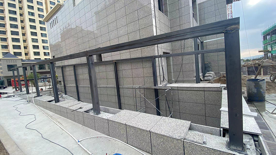 康太家園車庫出入口鋼結構安裝中